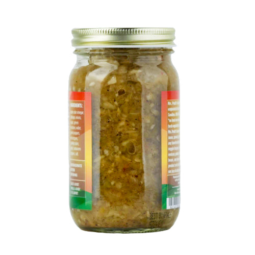 Mrs. Pruitt's Gourmet CHA CHA is made with the finest ingredients, including cabbage, green tomatoes, onions, green peppers, garlic, apple cider vinegar and a special blend of herbs and pickling spices.